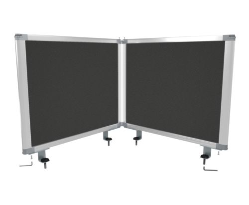 DESK MOUNTED PARTITION GREY W1200XH450MM CHARCOAL GREY FABRIC. Boyd Visuals Partition screens are contemporary, effective and easy to use no extra parts required. They are a new style of office & room divider, available for prompt delivery in 3 standard colours and 4 standard widths. Finished with silver aluminium frame. The Frosted polycarbonate, Charcoal Grey or Blue standard fabric partitions are designed to be simple, strong and effective. Panels can be connected to the desk very simply - everything required to install is supplied in one package. All fabric (Blue & Charcoal) panels are pinnable. All desk top partitions come complete with a desk clamp set.