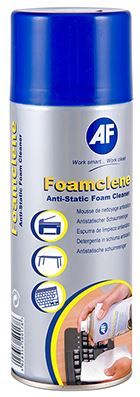 AF FOAMCLENE 300ML ANTI-STATIC. Powerful foaming cleaner that lifts grease and dirt for general external cleaning of hardware e.g. plastic casings, office furniture, walls, spot removal on carpets (preferably Maxiclene), metals and plastics.