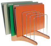 QUEFILE DESK ORGANISER TAWA . Easy file system designed to organise your desktop by sitting your current files in an easy to see and retrievable tiered frame, made of top quality stainless steel and solid wood - a quality look on your desk. Quefile swivels sideways to enable labelling to be read either along the top or down the side. Folds flat for easy storage. Accommodates 6 folders up to 30mm in thickness, or multiple thin folders per segment. W190 x D260 x H240mm. Files not included.