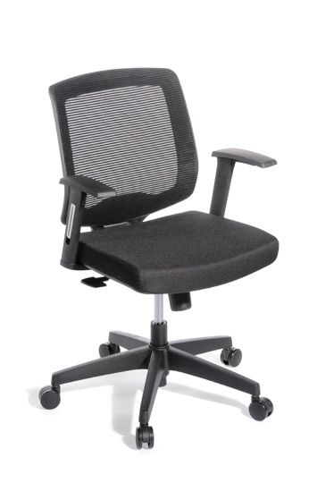 OFFICE CHAIR EOS MEDIA MEETING MESH BACK MID BACK. A simple mesh meeting chair suitable for the contemporary office. Media Meeting provides simple smart functionality and comfort for meeting and casual work spaces. Supportive contoured backrest. Rocker tilt mechanism. Gaslift seat height adjustment. Fixed height armrests (removable). Seat size: 470mm wide x 450mm deep. Back height: 410mm. Standard black fabric seat and black mesh back. Indicative sitting hours per day: 6-8 Indicative maximum user weight rating: 140kg. 5 year warranty in normal office use - excludes fabric. Supplied assembled. Shipped from supplier. Online only item, no returns.