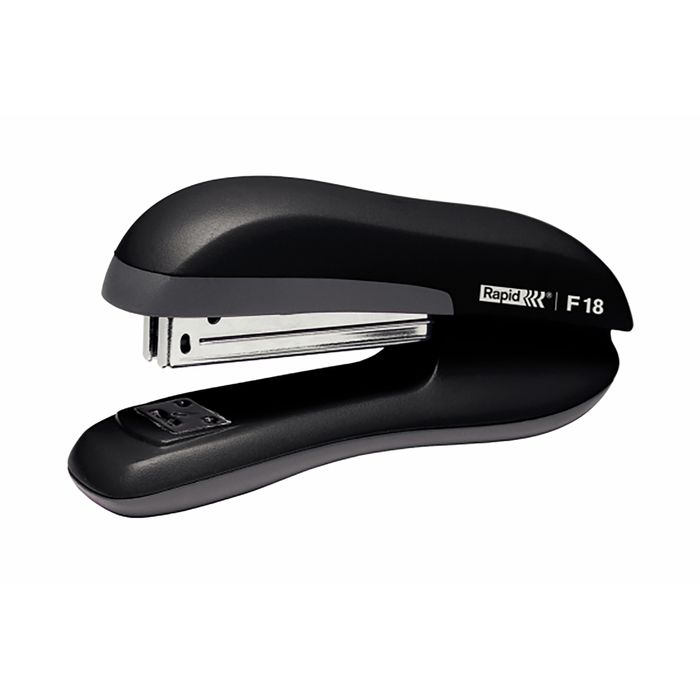 RAPID STAPLER F18 FULL STRIP 20SHT BLACK. Ideal for office. Design co-ordinated with FC20 punch. Staples up to 20 sheets. For stapling, pinning, and tacking. 78mm insertion depth. Takes full strip of Rapid 24/6 and 26/6 staples.