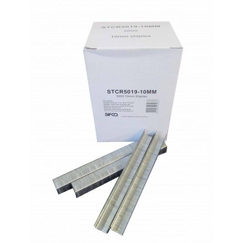 BOSTITCH STAPLES STCR5019 10MM BOX/5000. 10mm galvanised raised crown staples for use in: Bostitch Tackers T15, T5-8, PC4000, T6-8. Bostitch Pliers P6C-8 & P6C-8P. Bostitch Hammers H30-8 & PC1000. Markwell Tackers G5. Markwell Pliers MP6-8 & MP6-8P. SIFCO Hammers S5019 & HD5019.