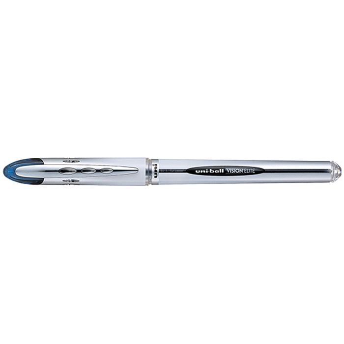 UNI-BALL VISION ELITE PEN 0.8MM BLUE. UB200. Liqud ink rollerball pen. Capped. 0.8mm fine nib. Features aeroplane-safe technology to eliminate in-flight leakage. Sold in singles. Buy x 12 to receive one box.