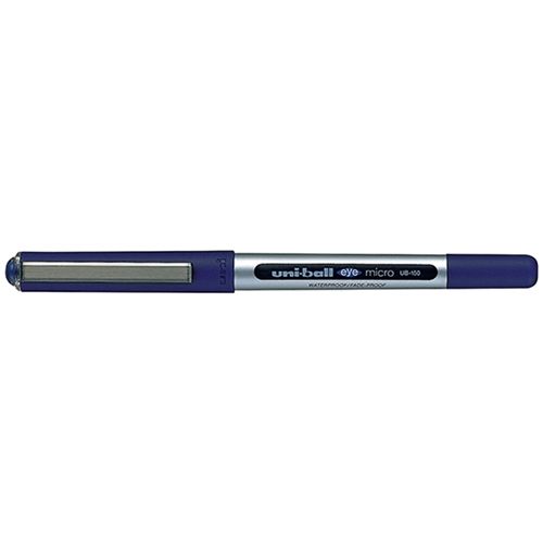 UNI-BALL PEN EYE ROLLER UB150 0.5MM BLUE MICRO . Features a unique window barrel that shows how much ink is left. Effortless ergonomic writing, ideal for RSI sufferers. Waterproof, fade-resistant pigment ink. Sold singly and in packs of 12.