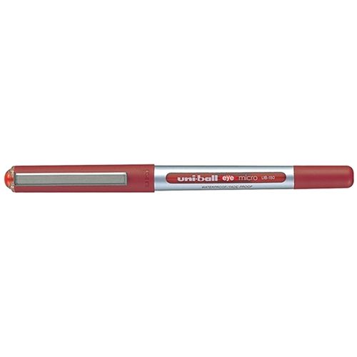 UNI-BALL PEN EYE ROLLER UB150 0.5MM RED MICRO. Features a unique window barrel that shows how much ink is left. Effortless ergonomic writing, ideal for RSI sufferers. Waterproof, fade-resistant pigment ink. Sold singly and in packs of 12.