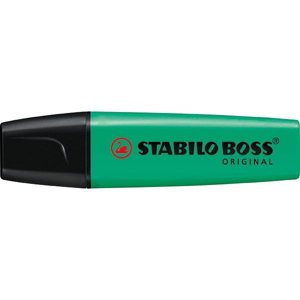 HIGHLIGHTER STABILO BOSS TURQUOISE 70/51. Stabilo Boss original highlighters with water-based pigment ink to ensure long lasting colour fastness. Versatile chisel tip is great for highlighting or underlining. Available in 9 attractive fluorescent colours, individually or in assorted sets. Attractive slim design. With Anti-Dry-Out technology, it can be left for 4 hr without replacing the cap. Chisel point nib allows you to highlight for 2 line widths: 2 mm and 5 mm. High level of comfort when highlighting. Water based ink for paper.
