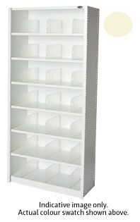 EUROPLAN PANEL SHELVING 7 LEVEL SCOTCH MIST . Our Panel Shelving range is available in 3 options. These units are strong and durable, made from steel that is double coated for extra protection against rust. Dimensions and Options: 3 Levels: 1025H x 945W x 405D mm. 5 Levels: 2000H x 945W x 405D mm (adjustable shelving). 7 Levels: 2000H x 945W x 405D mm (fixed shelving). Fixed or Adjustable shelving option. Easily relocatable dividers. Fully powder coated steel shelving. Available in standard powder coat colours.