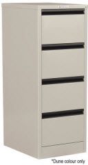 PRECISION FILING CABINET 4 DRAWER MIDNIGHT BLUE CLASSIC. W470 X D620 X H1320MM. All steel construction with fully powdercoated scratch resistant finish. Rivetless exterior that enhances the cabinets appearance and avoids damage to adjoining furnishings. Full height drawer sides that not only provide protection and support for suspension files but allow for alternative storage uses. Antitilt feature prevents a second drawer from being opened before the first is closed. Ball bearing, full extension runners provide smooth and quiet operation of the drawers (tested to over 400,000 cycles) and are equipped with a drawer retention mechanism to prevent "bounce back" on shutting. AFRDI approved, ensuring compliance with Australian Standard AS5079.2:2003 Filing Cabinets. 10 year warranty.