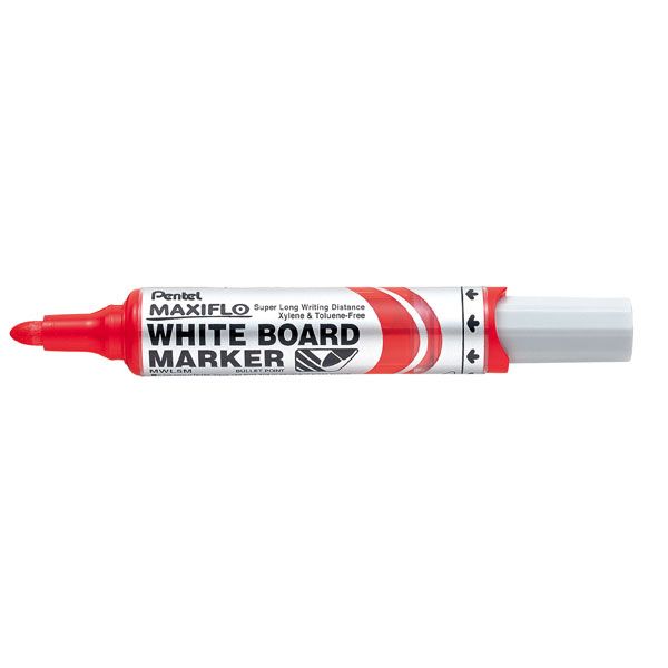 WHITEBOARD MARKER MAXIFLO BULLET PENTEL. The Maxiflo pump action ink rejuvenation ensures the ink will not dry out. It has liquid ink to facilitate a steady flow right down to the last drop of ink. To rejuvenate the ink supply, simply click the push button base. Lasts three times longer than conventional whiteboard markers. Bullet nib, with 2.1mm line width. Environmentally friendly - made from 50% recycled materials.