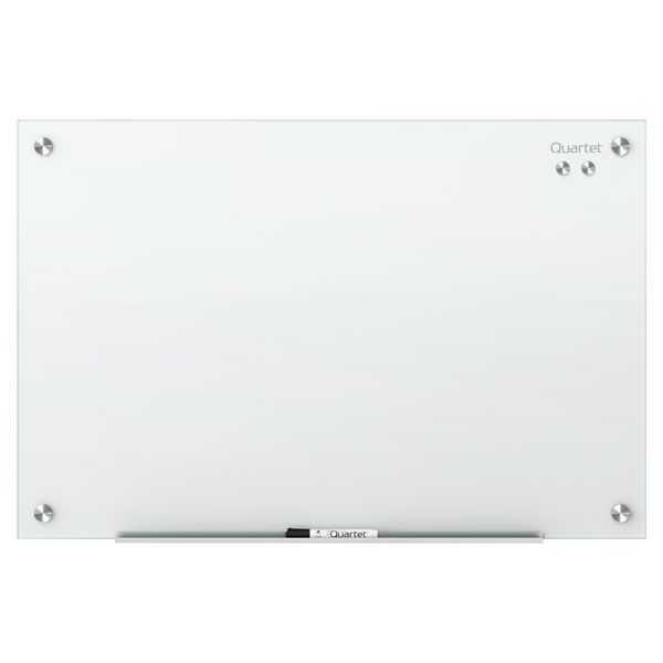 GLASS BOARD QUARTET INFINITY 1200X915 WHT WHITE. The tempered magnetic glass surface erases cleanly every time. 15 year surface warranty. Hang vertically or horizontally. Includes a Quartet marker and pass through mounting kits. Include adjustable pen trays. Will not stain or ghost.