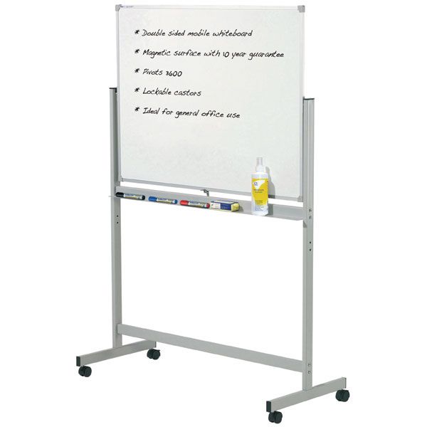 WHITEBOARD PENRITE MOBILE 1800 X 1200MM MAGNETIC. Pivoting at 360 degrees this double sided mobile whiteboard with premium magnetic surface is ideal for presentations and meetings. The magnetic surface is guaranteed for 10 years under normal conditions. Comes with castors for mobility and stability (2 locking, 2 non-locking) with a full length accessory tray that is integrated into the frame. 10 Year Surface Guarantee