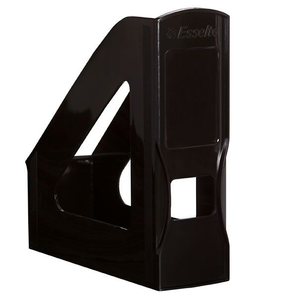 ESSELTE NOUVEAU MAGAZINE FILE BLACK . The elegant curve from this plastic document tray is echoed in the spine and the lip of the Nouveau magazine file. Ideal for storing paper, books, magazines, folders etc. W90 x D282 x H290mm.