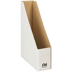 FM MAGAZINE FILE N0.4 WHITE 80X360X250MM. Cardboard construction, ideal for storing magazines, reports and brochures. Sloping sides allow for easy access.