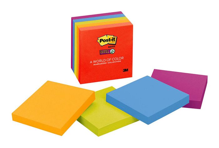 POST IT NOTES 654-5SSAN MARRAKESH PKT/5 SUPER STICKY. Super Sticky adhesive will stick to practically any surface where an attention grabbing note is needed. Designed for vertical as well as horizontal surfaces. Use on chairs, computer monitors, plastic folders, filing cabinets, doors, windows, frequently handled documents etc. W76 X L76MM. 100 sheets per pad. Made with plant based adhesive.