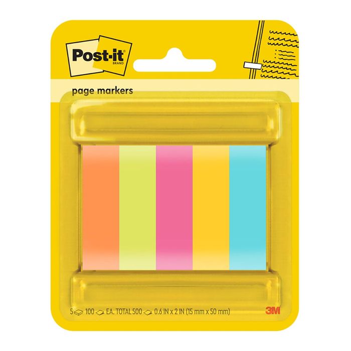 POST IT NOTES PAGE MARKERS 670 CAPETOWN / NEON COLOURS PKT/100 . Post-it Page Markers make it simple to mark, flag or highlight important information. Colourful paper page markers are easy to spot and easy to write on. Page Markers stick securely and remove cleanly for no document damage. 100 Sheets/Pad, 5 Pads/Pack. 500 sheets total. 12mm x 50mm.