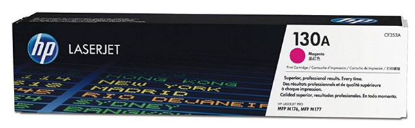 LASER TONER HP CF353A 130A MAGENTA. This original standard yield toner cartridge lasts for up to 1,000 pages at 5% coverage. Compatible With: LaserJet Pro MFP M176, MFP M177