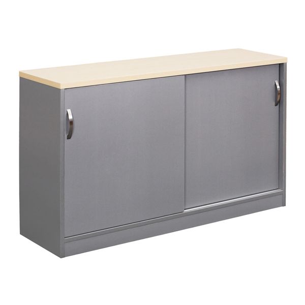 CREDENZA EKO NORDIC MAPLE/SILVER W1200 X D320 X H730MM. 2 SLIDING DOORS. EKO is Knight Groups new range of very affordable, European styled furniture for the small to medium office. Made with proven commercial fittings and E1 grade Eco-friendly composite wood you?re buying the best product at the best price! Rounded corners on desks and workstations provide extra protection. All edges sealed to give full protection from moisture intrusion. 25mm tops gives you strength where it counts. Available in NZ Tawa or Nordic Maple/Silver finish. Hardwearing melamine surface and 2mm PVC edge will take the knocks. Assembly required. 15 year guarantee.