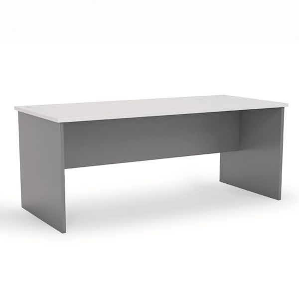 ERGOPLAN DESK W1800XD800XH730 SILVER/WHITE . Ergoplan is a best-selling range of functional furniture for everyday use. Constructed in sturdy 25mm thick board with matching uv resistant solid edging. The Ergoplan desk has a 400mm high modesty panel for strength and privacy, plus corner cable entry ports. 5 year warranty. Assembly required. There may be a freight cost on this item but we would advise you of this before shipping your order.