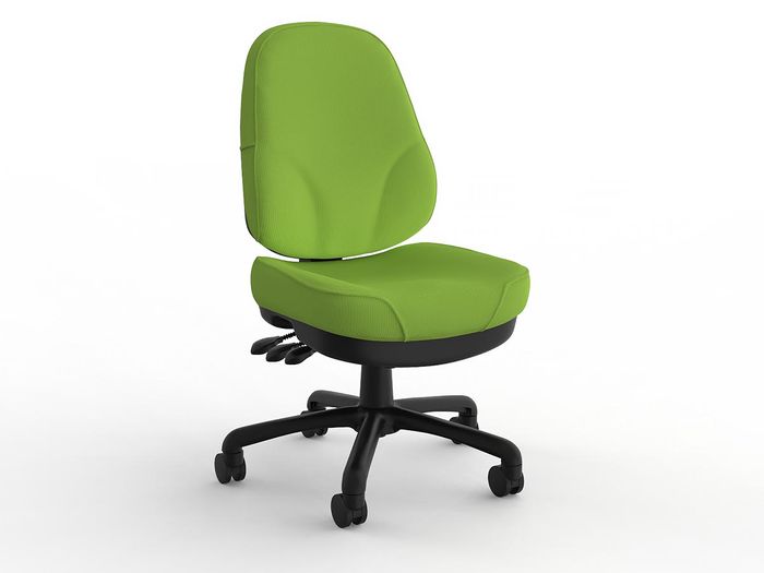 OFFICE CHAIR KNIGHT PLYMOUTH LIME GREEN BREATHE FABRIC . A big chair for larger bodies. Heavy duty 3 lever ergonomic mechanism. That's more adjustment for more comfort. Levers are 3 aside and close to the seat - ergonomics should be easy. Premium quality gas springs. No sinking feeling - we guarantee them for life. Plush high back with specially molded high density foam for heavy duty comfort. You've only got one back and we help you to look after it! 98mm molded high density seat cushion. Like we said, this is serious comfort! This star base is extra large, strong and tested to 1130kg. Large 60mm castors. A big chair needs big wheels! PLYMOUTH. Seat height: 485-615mm. Seat width: 565mm. Seat depth: 540mm. Back height: 585mm. 160kg weight rating. 10+ hours comfort rating. 15 year warranty. Supplied assembled.