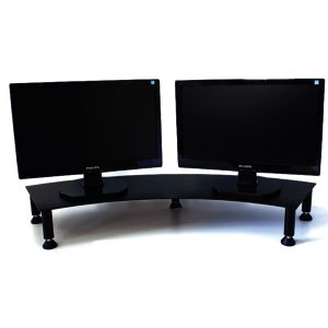 MONITOR STAND FLUTELINE DUAL METAL. Board Size: 900mm x 260mm. Height range: low from 65mm - 110mm. Height range: high from 120mm - 190mm. Follows the natural rotation of the head maintaining the same focal length. Height Adjustable Ideal for Rectangular or Corner Desks.