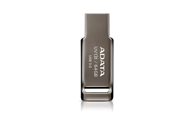 USB FLASH DRIVE ADATA UV131 USB3.0 64GB. Seamlessly crafted with a chromium-grey finish, the UV131 USB Flashdrive is a stylish statement about simplicity and durability. For those who demand high quality, it features a sturdy zinc-alloy housing with a streamlined exterior and capless design that delivers the ultimate in professionalism and ease-of-use. Thanks to its style and portability, the UV131 is not only an USB flash drive, but also a fashion accessory for your daily life. Interface - USB 3.0 (Backwards compatible with USB 2.0) Colour - Chromium Grey. System RequirementsWindows XP, Vista, 7 , 8, 8.1, 10. Mac OS 9.X or higher. Linux Kernel 2.4 or higher. Dimensions (mm)16.85 (w) x 44.20 (l) x 8.00 (h). Weight 8g.