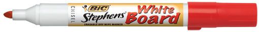 WHITEBOARD MARKER RED CHISEL TIP STEPHENS . These markers are Xylene free and gives low odour. The ink dries instantly and is easily removed. Sold singles, boxed in 12,s.
