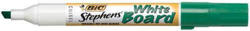 WHITEBOARD MARKER GREEN CHISEL TIP STEPHENS . These markers are Xylene free and gives low odour. The ink dries instantly and is easily removed. Sold singles, boxed in 12,s.