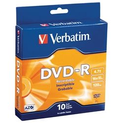 - VERBATIM DVD-R 4.7GB 16X SPINDLE PKT 10