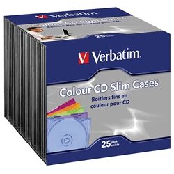 CD/DVD JEWEL CASES SLIM VERBATIM PKT/25 ASSORTED COLOURS.