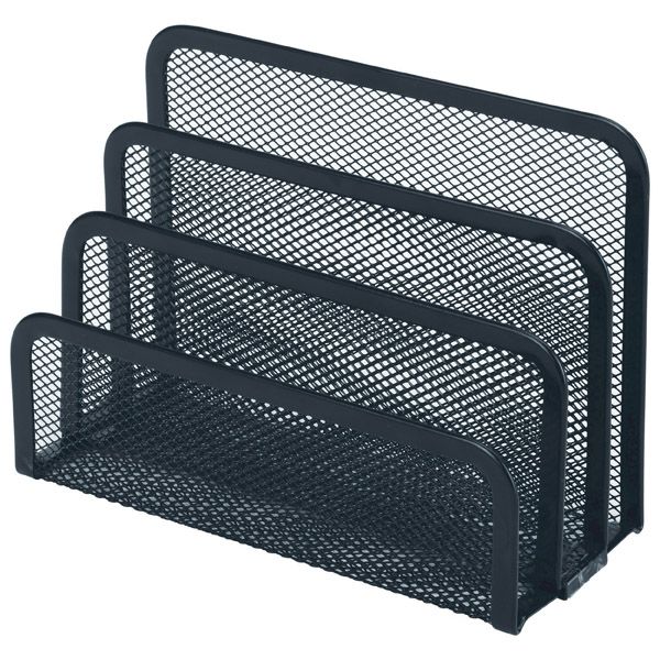 ESSELTE MESH VERTICAL SORTER BLACK. Sturdy steel mesh range. Add a touch of sophisticated elegance to your desk. Perfect for the home or in the office. Vertical Organiser with three slots. Black . 175mmW x 80mmD x 135mmH