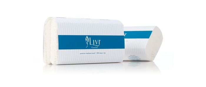 HAND TOWELS LIVI ESSENTIALS 1402 CTN/20. Premium slimfold / multifold hand towel for use in Livi D811 and D822 dispensers. 200 sheets per pack. 20 packs per carton. 1 ply, sheet size 230mm x 240mm. Embossed. Sold per carton only. PEFC Certified.
