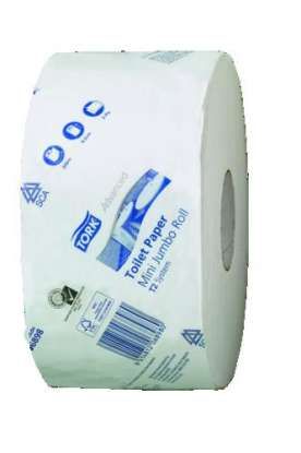 TOILET TISSUE TORK T2 MINI JUMBO CTN/12. Tork T2 Mini Jumbo Universal Toilet Tissue 1 Ply 400m/roll/12rolls/case. Tork T2 Mini Jumbo is a toilet tissue solution that fits large washrooms with more than 25 visitors per toilet, longer maintenance cycles and refill requirements of once a day. Each roll is the equivalent of 6 conventional rolls. Environmental Choice New Zealand. FSC Certified. Virgin tissue. Made in New Zealand . Fits dispensers 3012084 and 3016321.