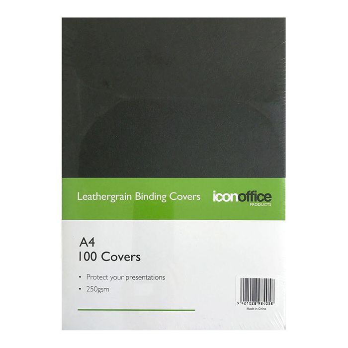 ICON BINDING COVERS A4 L/GRAIN BLACK PKT/100.