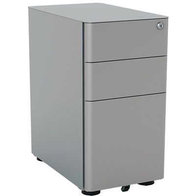 AGILE MOBILE METAL 2 DRW+FILE GREY SLIMLINE. Knight Agile Silver Slimline Metal Mobile. W300mm X D500mm X H580mm Full extension ball runners. Locking. High quality low set castors. Filing conversion bar (fit for A4, letter,legal,hanging folders). Hidden side handle. 2 Interlocked pencil drawers and 1 file drawer. Pencil tray included . Freight cost may apply.