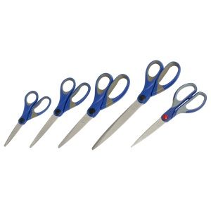 SCISSORS MARBIG NO. 5 COMFORT GRIP135MM BLUE. Premium quality scissor made of heavy gauge stainless steel blades with a strong, durable edge. Blades are corrosion-resistant. Comfortable, moulded grip handles for effortless, easy cutting. General purpose scissors, suitable for cutting light cardboard, paper, tape, cloth and many other materials in the office or home. Contemporary blue colour. 5 Year warranty.