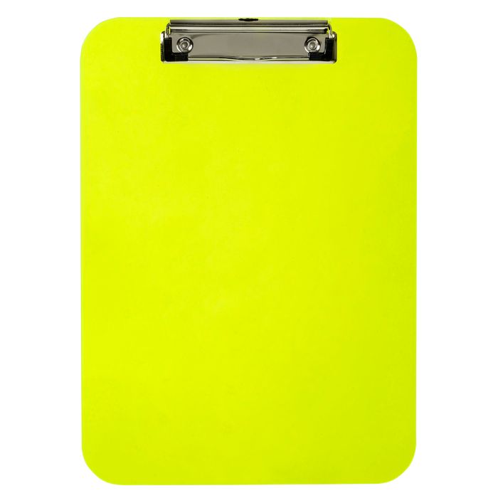 MARBIG PROFESSIONAL CLIPBOARD PLASTIC A4 NEON GREEN. Marbig Professional A4 plastic clipboards are made from a rigid acrylic material that provides a smooth writing surface. Features a sturdy metal clip with retractable hanging hook. Securely holds paper and a pen. Durable, hard plastic ensures a sturdy writing surface. Clip keeps documents handy and secure. Bright green colour.