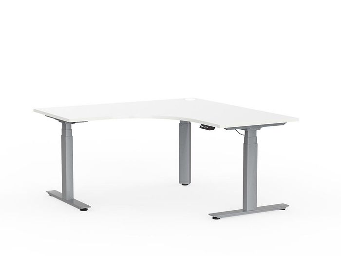 AGILE ELECTRIC WORKSTATION 1500 WHT/SILV. 1500mm 90° x 700mm Agile electric height adjustable workstation, with white worktop and silver powdercoat frame . Electric: Smooth silent path - so no co-worker disturbance or irritation. Digital height readout with 4 point memory on 2 column and 2 point memory on 3 column.