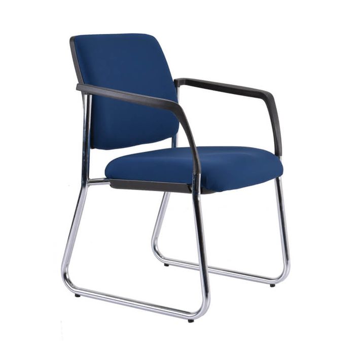 VISITOR CHAIR BURO LINDIS SLED BASE NAVY. The Buro Lindis sled base guest chair features a strong sled base frame and an incredibly supportive but generous seat & back. Features. Generous size seat and back. High density polyurethane foam. Strong polished chrome sled frame. Black polypropylene arms. 130 kg weight rating. 6-8 comfort rating.