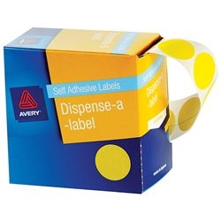 AVERY CIRCLE LABEL YELLOW 24MM PK500. General purpose labels. Dispenser pack for ease of use. Great for often repeated tasks when you require easy access to labels. Removable adhesive.