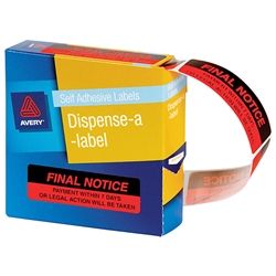 AVERY PRINTED LABEL 19X64 FINAL NOTICE. Pre printed label. Removable adhesive. Dispenser pack of 125. Fluro red.