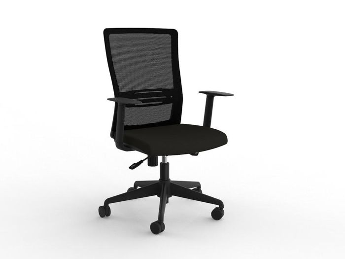 KNIGHT CHAIR BLADE MESH BACK WITH ARMS. The Blade highback is a sleek-looking reclining mesh chair with tension adjustment making it an ideal option for the office, meeting or boardroom. Moulded seat foam upholstered in Black fabric. Simple lever for height adjustment. Simple controls make it easy to adjust the chair - lock back upright for task work or free float. Tension adjustment dial for reclining backrest. Supportive mesh backrest with adjustable lumbar (removable). Slimline fixed height armrests (removable). Stylish black nylon star base with heavy duty 60mm unhooded castors. 140kg weight rating. 8+ hour comfort rating. Black. 15 year warranty. Supplied assembled.