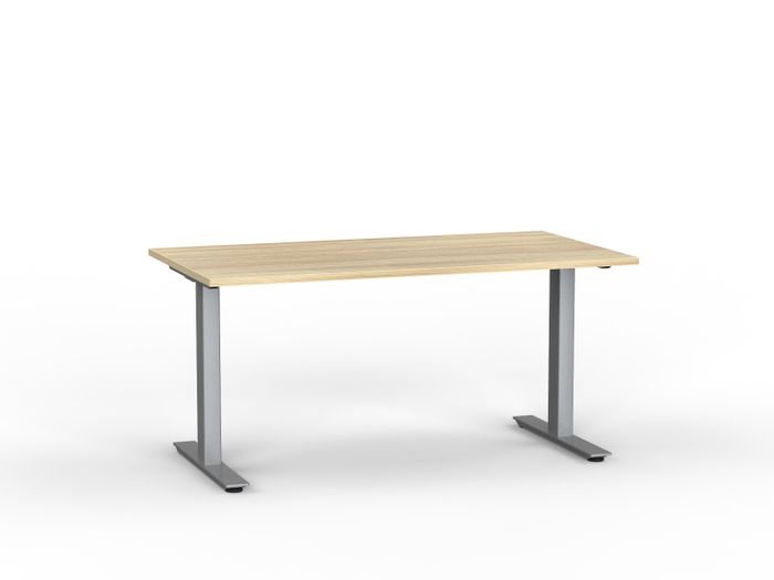AGILE FIXED HEIGHT DESK 1500X800 SIL/AO. SILVER BASE WITH ATLANTIC OAK TOP. The Agile desk fixed height has a strong steel frame with 90 mm x 60 mm legs and connecting rails to provide a stable platform rated to 120 kgs per desk. The desk tops are 25 mm thick Melamine finish on E1 grade board. The fixed height desks are 715 mm high. Supplied reasy to assemble. Freight may apply.