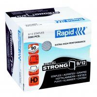 RAPID HD STAPLES RS9/12 12MM BOX/5000. Rapid 9 Series heavy duty staples. Leg length: 12mm. Made from quality wire. Galvanised corrosion protection. For use in Rapid HD staplers Rapid 9, 170, 110 and 210. Suitable for stapling 60-90 sheets of paper. Available lengths: 8, 10, 12, 14, 17, 20, 24 .