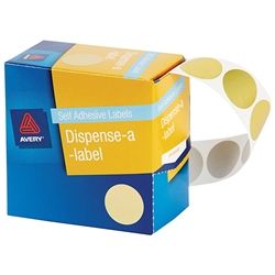 AVERY CIRCLE LABEL GOLD 24MM PKT/250. General purpose labels. Dispenser pack for ease of use. Great for often repeated tasks when you require easy access to labels. Removable adhesive.