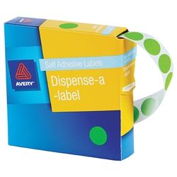 AVERY CIRCLE LABEL FLURO GREEN 24MM PKT/350. General purpose labels Dispenser pack for ease of use Great for often repeated tasks when you require easy access to labels Removable adhesive.