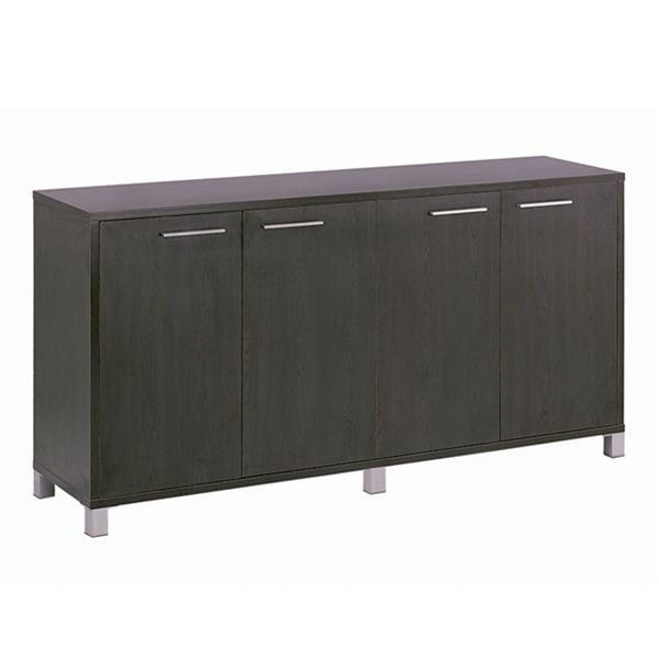 CUBIT CREDENZA W1800XD450XH900 DARK OAK 4 DOOR. 1800mm wide Cubit credenza in Dark Oak. 1800w x 450d x 900h, with 2 adjustable shelves. Lockable. 50mm Box Feet for added strength. Slimline aluminium handles give your office a crisp, modern feel. Solid 18mm backs. Commercial grade 25mm construction. Soft close hinges - doors close quietly and smoothly. Assembly required. 5 year guarantee. There may be a freight cost on this item but we would advise you of this before shipping your order. Full Product Information