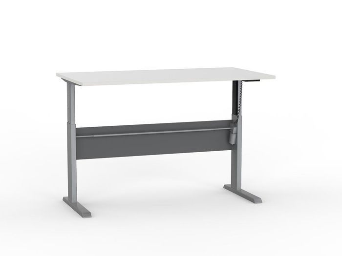 DESK CUBIT ELECTRIC HIGHRISE 1500 X 800 ELECTRIC DESK SILVER FRAME WHITE TOP. Cubit electric highrise sit/stand desk, enabling your office workspace the ability to adapt to suit multiple users. Strong, durable steel frame and 25mm commercial-grade worktop. Adjustable height 660 - 1205 mm includes worktop.