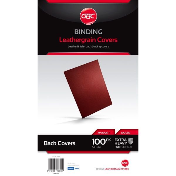 BINDING COVERS A4 LEATHERGRAIN MAROON PKT/100 IBICO. Leather-look A4 textured binding covers. Perfect for everyday reports & documents. Range of colours available. 300GSM .