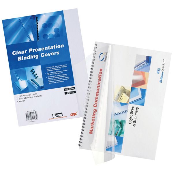 COVERS CLEAR IBICO A4 150MICRON PKT/25. Keeps bound documents clean and protected 150micron.