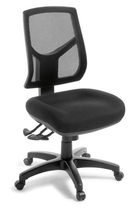 OFFICE CHAIR CREW MESH 3 LEVER BLACK NO ARMS. Workforce seating with generous dimensions and generous support. Crew features a supportive soft-feel mesh backrest, and a generous-sized deluxe comfort seat. The 3-lever mechanism and seat slide provides the versatility and adjustability that todays computer-users require. 160kg weight rating. High backrest with soft-feel mesh. Generous-sized deluxe comfort seat. Ratchet backrest height adjustment. Heavy-duty 3-lever mechanism: back angle, seat angle. and gaslift height adjustments. Seat slide, for seat depth adjustment. Black seat upholstery standard. Seat size: 510mm wide x 510mm deep. Back height: 550mm. Height Adjustable Armrests, polished Aluminium Base, alternative seat fabrics (black upholstery standard) and a Small Seat are all options for this chair - ask us for details.
